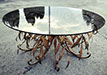 WOODEN COFFEE TABLE WITH BRASS LEGS, 1950